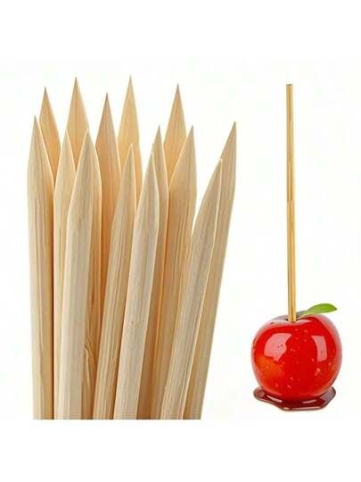 100pcs Bamboo Apple Skewers, 5mm & 5/7" (Approx 15/20cm) Bamboo Candy Apple Sticks, Candy Lollipop Sticks, Corn Dog Sticks, Barbecue Skewers - Bamboo - View 1