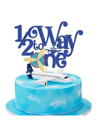 1pc Airplane 1/2 Half Way To One Cake Topper Glitter Half Way To Go Cake Pick Happy Birthday Cake Decoration For Birthday Party Cake Decorations Supplies - Multicolor - View 1