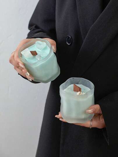 1pc Handmade Summer Beverage Scented Candle, Niche Appearance Fragrance, Blue Ice Cube Soy Wax Candle, Exquisite Gift, Girly Aroma Candle, Ethereal Atmosphere Birthday Gift For Friend - Multicolor - View 1