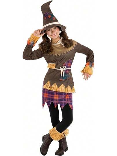 Morph Costumes Spook-Tacular Kids Scarecrow Costume Set - Fun Halloween Fancy Dress With Tunic, Straw Cuffs & Hat For Creative Dress-Up - Brown - View 1