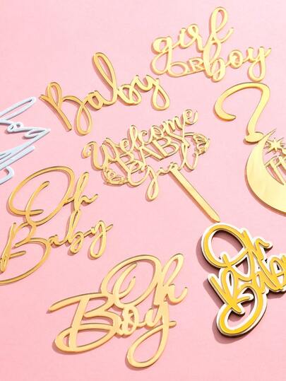 Random1/2/4/6/8pcs Oh Baby Cake Topper Decoration-Acrylic Baby Boy Or Girl Gender Reveal Party Cake Decorations Supplies, Baby Shower - Multicolor - View 1