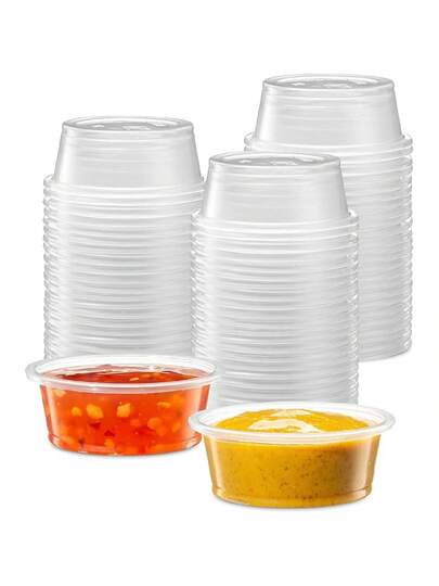 {4 Oz,200 Cups} Clear Diposable Plastic Portion Cups No Lids, Small Mini Containers For Portion Controll, Jello Shots, Meal Prep, Sauce Cups, Slime, Crafts, Disposable Souffle Cups & Much More-Cb - 1.5 Oz - View 1