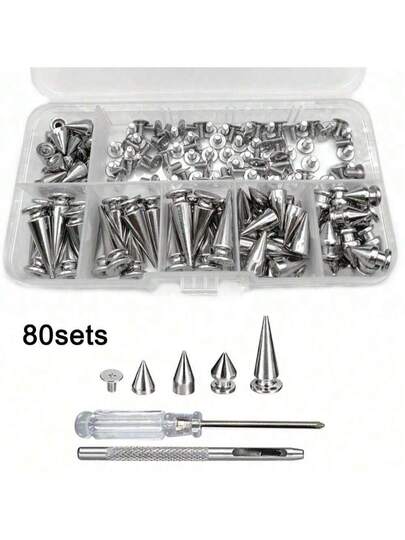 80 Sets Pointed Bead Screw Rivet, Punk Spikes And Studs Kit, Metal Tree Spikes Studs For Leathercraft And Punk Style Clothing Accessories DIY Craft Decoration - Multicolor - View 1