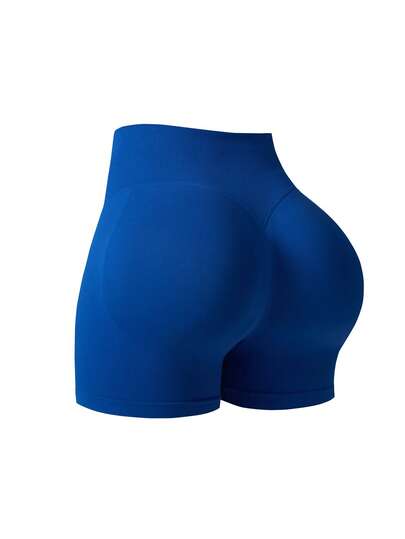 1pc Women's Seamless Solid Color High Waist Tight Yoga Shorts, Tummy Control, Fitness