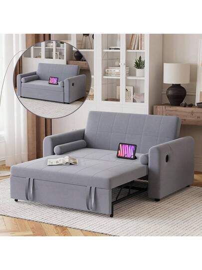 2 Seater Sofa Bed, 3-In-1 Convertible Fabric Pull Out Sleeper Sofa With 3-Position Adjustable Backrest, Side Pockets For Living Room, Guest Room, Dark Grey - Dark Grey - View 1