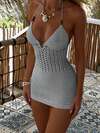 Yuwenier Women's Sexy Elegant Knit Deep V-Neck Backless Hollow Out Bodycon Vacation Dress, Suitable For Beach Wear
