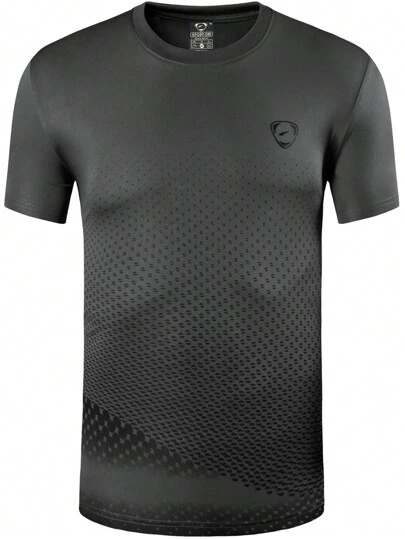 jeansian Boyfriend Style Men Geo Print Sports Tee - Dark Grey - View 1