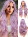 Popular Purple Long Wavy Wig For Women Natural Style Long Curly Wavy Wig With Bangs Elegant Hairstyle Fluffy And Natural Synthetic Heat-Resistant Wig Suitable For Daily Party Lolita Water Wave Costume Wig Halloween Role Play Christmas Party Wig 26 Inches