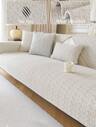 1pc Thick Plush Sofa Cushion Cover, Modern Simple Anti-Slip Warm Sofa Seat Pad, Dust-Proof Washable Sofa Slipcover, White Fresh And Soft, Pet Friendly, Fits L-Shaped Sofa And 1/2/3/4 Seater Sofa, Suitable For Bedroom, Office, Living Room