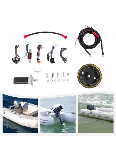 kangten Electric Starter Conversion Kit, Outboard Engine Electric Starter Conversion Kit, Electric Starter Conversion Kit For Dongfa 2-Stroke 9.8HP Outboard Motor - Black - View 1