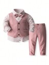 KIMOCAT 3pcs Boys' Formal Suit Set, Solid Color Long Sleeve Shirt, Vest, And Pants, Gentleman Attire For Occasions