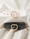 2pcs Kids' Combination Belt With Heart-Shaped Buckle, Hollow PU Waist Belt For Jeans, Dresses, Student Waistband