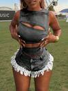 in Breathable Women Denim Tops