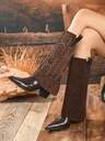 Women's Mid-Calf Boots, Solid Color, Western Style Fringe, Brown, Suitable For Vacation, Party, Outdoor, Autumn/Winter