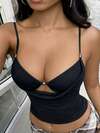 DAZY Women's Green Lace Sheer V-Neck Tie Strap Camisole For Beach Holiday Vacation Summer