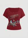 ROMWE Summer Outfits Dark Grunge Punk Asymmetric Shoulder Loose Fit Vintage Striped Plus Size T-Shirt