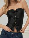 Comfortcana 2pcs Women Plaid Lace-Up Camisole And Shorts Clothes Set, Valentine's Day