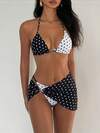 Swim Vcay Women's 3-Piece Swimsuit Set, Sexy Halter Tie Polka Dot Pattern Beach Wear, Elegant Resort Style, Spring/Summer
