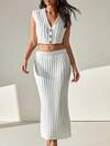 CLARA VERO Elegant V Neck Rib Knit Button Down Sleeveless Bodycon Vest & Maxi Rib Knit Bodycon Knitted Skirt 2 Pieces Knit Set For Fall Winter Women Outfit 2 Piece Skirt Sets Woman Fall Women Clothes