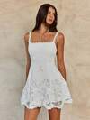 Enchnt Spring And Summer Romantic Women's White Delicate Floral Eyelet Hollow Embroidery Square Neck Sleeveless Cute Princess Mini Dress, Sweet And Elegant, Suitable For Wedding Season, Holidays, Vacation, Sweet Date And Graduation Season, Women's Summer Clothing, Dress Elegant