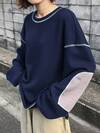 FRIFUL Solid Color Patchwork Sheer Polka Dot Mesh Fabric Loose Casual Versatile T-Shirt