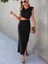 Chiquease O-ring Cut Out Shoulder Pads Split Thigh Dress