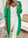 Women's Casual Long Sleeve Solid Color Hollow Out Knit Cardigan - Front Button Design Spring