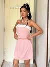 ROMWE Kawaii Heart Print Tie Strap Babydoll Cami Top, School