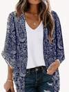 Linhara Plus Size Boho Front Button Allover Print Casual Blouse, For Summer