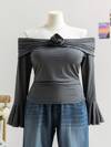 Soleia Plus Size Women Vintage Floral Pattern V-Neck Long Sleeve Tie-Front Flared Top, Lightweight Knitted Mesh Fabric, Suitable For Autumn/Winter Outwear,Fall&Winter Women Clothes,Thanksgiving Women Clothes,Long Sleeve Shirt,Thanksgiving Women Shirt,New Year Eve Clothes