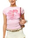 SHEIN LUNE Floral Ruffle Hem Elastic Crew Neck Short Sleeve Blouse, Plus Size