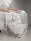 1pc White Foldable Laundry Basket With Handle And Side Pocket Large Capacity Pop-Up Laundry Hamper With Handle - Foldable Mesh Laundry Basket For Dirty Clothes Storage - Convenient Household Solution, School Supplies, School Accessories, Back To School, Storage, Laundry Basket, Basket, Organiser, Organization And Storage, Closet Organization And Storage, Storage Organizer, Bedroom, Wardrobe, Home, Storage Basket,Fall Decor