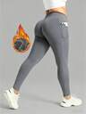 Plus Size Women's Autumn/Winter Flared Pants, Fashionable Workout Thermal Lined High Waist Slimming Yoga Leggings, Casual Skinny Pants With Pockets, Suitable For -5°C