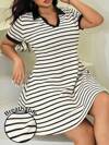 Solflare Striped Casual Plus Size Women Summer Short Sleeve Dress,Back To School,Teacher,Airport Outfit For Women,Comfortable,Breathable Striped Dress Retro Dress French Style Dress Nautical Dress Plus Size Fitted Dress, Slimming Dress Dating, Daily Leisure, Daily Outings