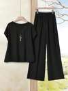 Rusticease 2pcs Women Solid Round Neck Short Sleeve Shirt And Wide Leg Pants Set,Summer Sets