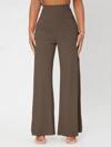 SHEIN PETITE Solid Rib-knit Wide Leg Trousers