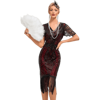 Women's Elegant Floral Sequin Spaghetti Strap 1920s Vintage Dress Cocktail Semi Formal Prom Wedding Guest Dress, For Birthday, Graduation, Dinner, Homecoming Party Dress