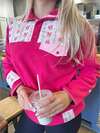 Womens Oversized Fleece Sweatshirt Patchwork Floral Checkered Accents Long Sleeve Polo Collar Pullover Tops Spring Fall Casual Outfits