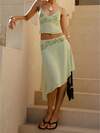 DAZY Women 2pcs/Set: Solid Color V-Neck Vest And Skirt, Casual Summer Linen