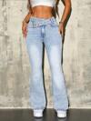 SHEIN Tall Oblique Buckle Waist Distressed Skinny Flare Jeans