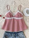 Teen Girl Red Plaid Lace Trim Casual Versatile Camisole Teen Red And White Top Teen Girls Clothing Corset Top Teen Girl Babydoll Top