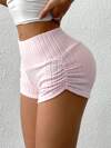 SHEIN EZwear Light Pink Knitted Ruched Fitted Shorts, Summer