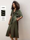 Maija Women's Olive Green Waist Belt Decor Casual Shirt Dress, Loose Fit V-Neck Short Sleeve Button Front, Fashion & Comfort, Suitable For Summer And All Seasons Business Casual Women's Office Wear Low-Key Old Money Style Effortless Temperament High-End Urban Commuting King Magazine Editor-In-Chief Same Style Urban Social Vacation Party Wear Charming Women's Airport Clothing Stockholm Style