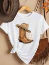 EMERY ROSE Women's Short Sleeve Boots And Hat Monogram Print T-Shirt Casual Short Sleeve Crew Neck Top Let's Go Girls Graphic Tees Women Tops