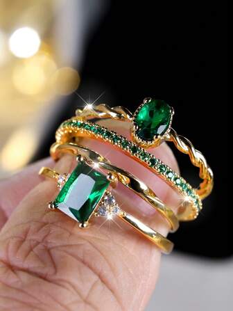 1pc Bohemian Style Engagement Ring With Cubic Zirconia Inlaid In Pink, Green, Or Aqua - Engagement And Wedding Jewelry