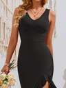 Sleeveless Slim Fit Solid Color Midi Dress, Suitable For Commuting In Summer