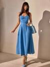 CLARA VERO Women's Indigo Elegant Sleeveless Long Dress