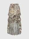 ROMWE Women's Retro Hippie Chic Music Festival Low Waist Ruffle Hem Leopard Print Chiffon Low Waist Mermaid Skirt