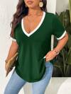 SHEIN Frenchy Plus Size Summer Casual Color Block Trim Short Sleeve T-Shirt