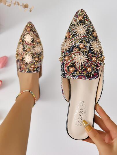 Women's Fashionable And Gorgeous Flat Mules Shoes For Holiday Party And Ceremony, Comfortable And Breathable - Multicolor - View 1